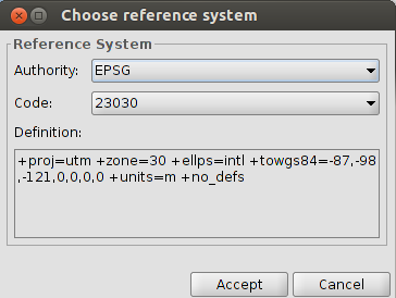 In early versions of gvSIG a support of CRS (Coordinate Reference System) was developed with basic functions and definitions. This implementation allows the user to select the reference system based on the datum, projection and time zone.