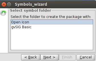 In this window we can see all the symbol librearies available in our gvSIG, in this case “gvSIG Basic”, which is the default library, and “Open Icon”, which is the one we have created. Once selected the latter we will click on Next.