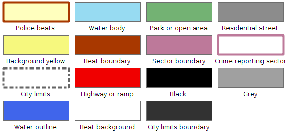 In this case we created the line and fill symbols manually and for the marker symbols we used the text font called “CMS. The Crime Mapping Symbology”.