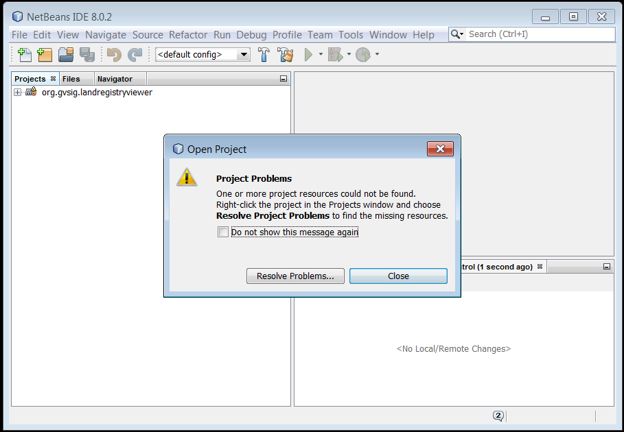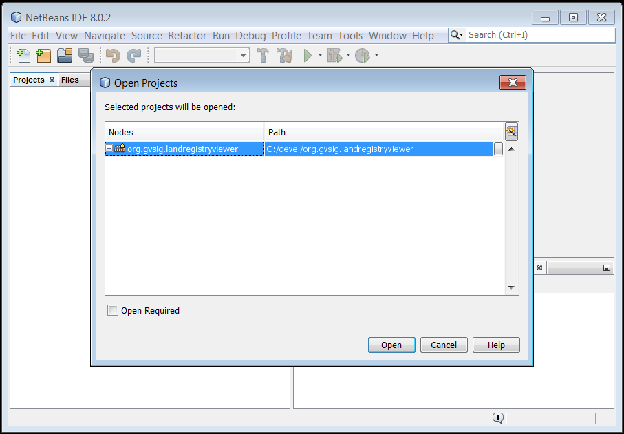 We will select the project “org.gvsig.landregistryviewer” and click on “Open”.