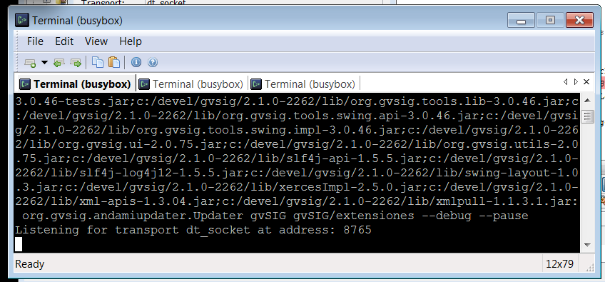 Once done the breaking point, we will go to Console2 and we will go to boot gvSIG, but passing before the parameters “–debug –pause”.