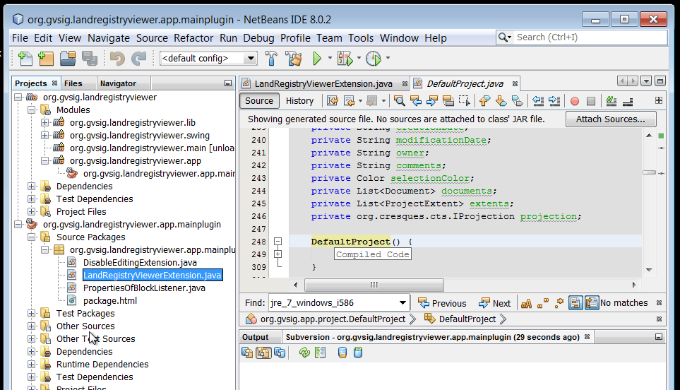 Once we have these three things, we will boot NetBeans, then, downwnload the project “org.gvsig.landregistryviewer” and we will compile it. We will download it from the url:
