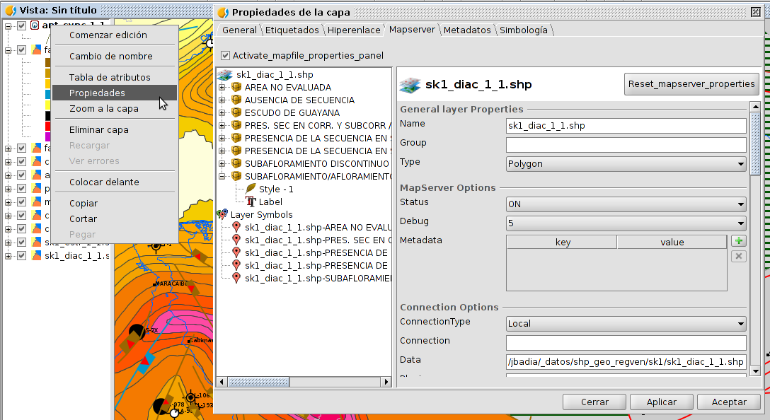 …and the second access point is with right click>’Properties’ in the layer(to define the MapFile attributes of each layer).