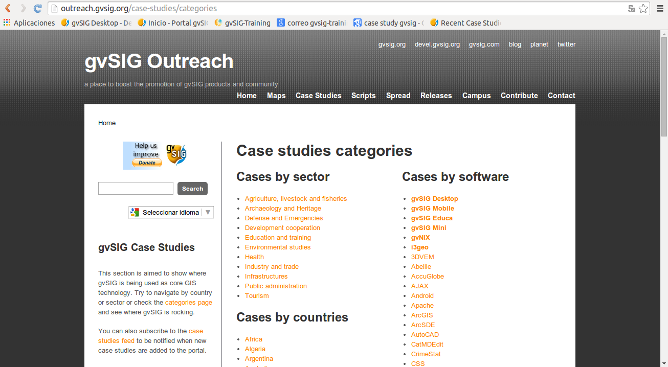 Podéis ver todos los casos de uso en el portal gvSIG Outreach, donde también podéis realizar búsquedas por país, por sector, por software o por palabras clave.