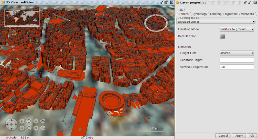 Camino a gvSIG 2.3: Soporte vectorial en Vistas 3D y extrusión