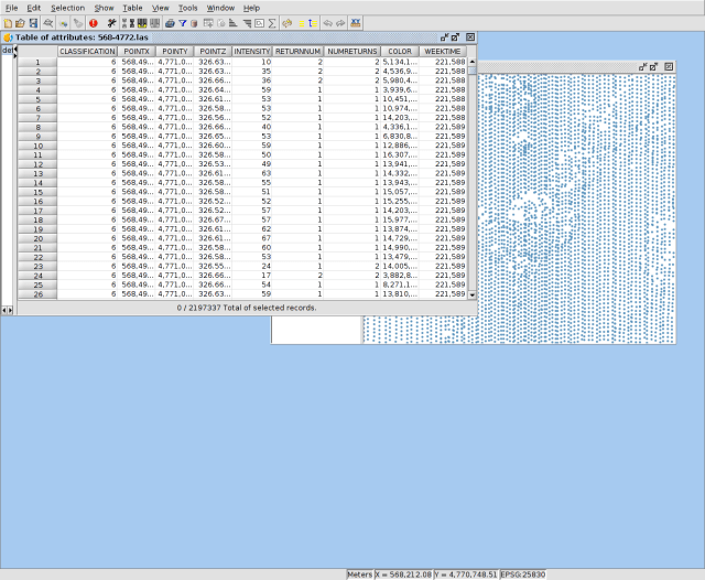 Both drivers include two parameters “clarified” (simplification), which let you read a subset of the total points available in the LAS file. Simplification allows quickly draw huge files at small scales (where a level of detail as high as that provides the file is not required):