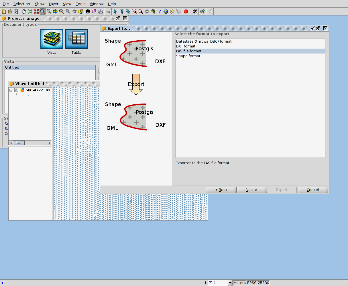 User will have two options for working with LAS files, based on gvSIG implementation of two different libraries, each one with its advantages: