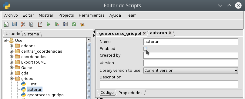 ¿Es posible el autoarranque de scripts al abrir un proyecto concreto, en lugar de hacerlo al abrir gvSIG?