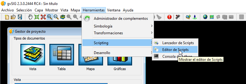 Ahora nos iremos a Herramientas – Scripting – Editor de Scripts: