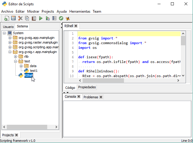 Ejecutaremos el siguiente script para abrir la consola de R de la instalación correspondiente a gvSIG: