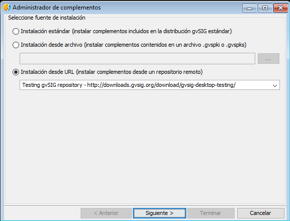 Una vez instalado el paquete, tendremos que reiniciar gvSIG.