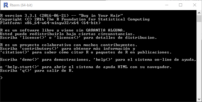 It will open a console like in the image, that correspond with the R environment that is inside gvSIG: