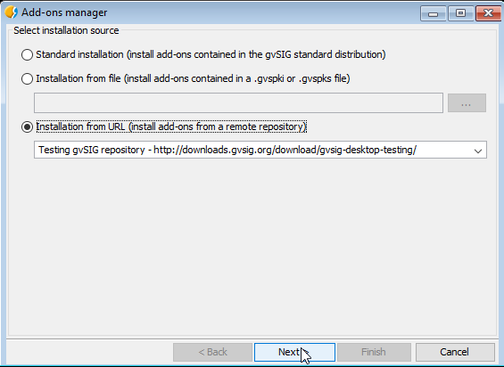 Once it is installed, we should restart gvSIG.