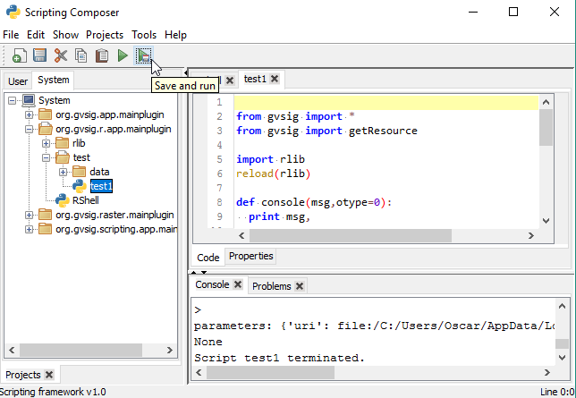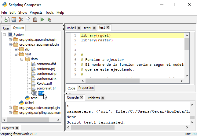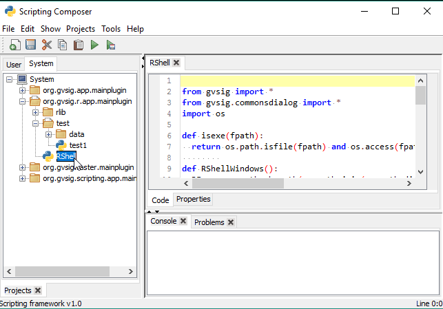 We will execute the RShell script to open the R console that is inside gvSIG:
