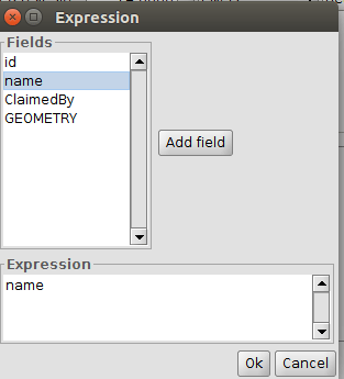 By clicking on the button “OK”, the selected field appears in the “Labelling expression” box.