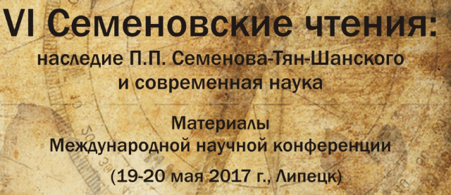 The document with the articles presented during the VI Conference in Memory of Petr Semyonov-Tyan-Shansky that was held in Lipetsk (Russia) on May 19th and 20th, 2017, is now available.