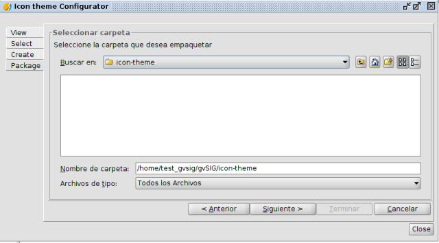 En primer lugar tendremos que seleccionar la carpeta de nuestro juego de iconos. Pulsamos “Siguiente” y rellenaremos los metadatos del paquete. Es importante rellenar los campos que aparecen en rojo. Esta información será la que se muestre en el “Administrador de Complementos” cuando un usuario vaya a instalar el plugin que contiene el juego de iconos. Pulsamos de nuevo “Siguiente” y nos mostrará la ruta y nombre del paquete que se creará; por defecto es la carpeta “Install” que se ubica en ”gvSIG-desktop/gvSIG-desktop-2.4.0”. Finalmente tendremos nuestro paquete listo.