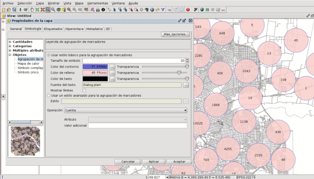 Presentamos otra novedad de la próxima versión de gvSIG Desktop, especialmente útil cuando queremos visualizar un determinado fenómeno cuya cantidad no podemos determinar únicamente de forma visual. Para ello esta leyenda representa además del elemento mediante un símbolo, la cantidad de veces que sucede en un área determinada y que puede ajustar el usuario.