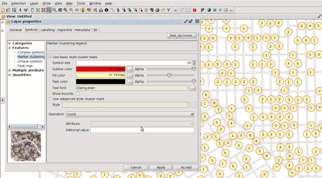 The legend allows to represent the number of elements (quantity of elements every X pixels) as well as any other attribute that is contained (maximum, minimum, average, summation …). With no doubt, it’s a type of legend that complete the many possibilities of symbology of gvSIG Desktop.