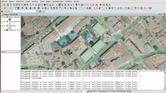 Podemos digitalizar tanto con cartografía de referencia, por ejemplo una ortofoto, como utilizar la consola de edición para escribir las coordenadas de inserción.