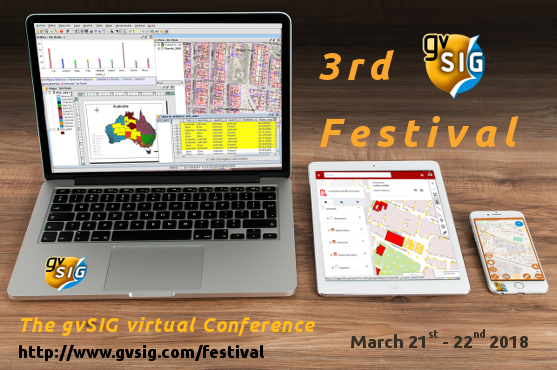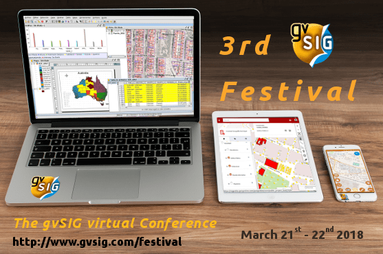 The third edition of the gvSIG Festival, the virtual conference about the gvSIG project, will be held in March 21st and 22nd 2018.