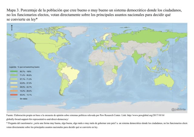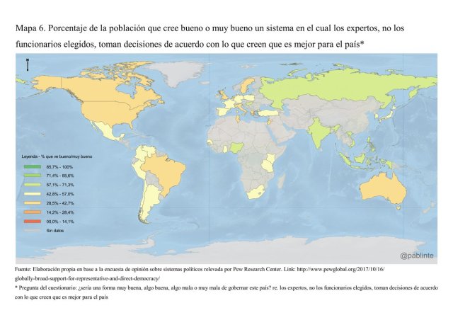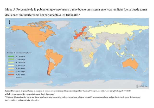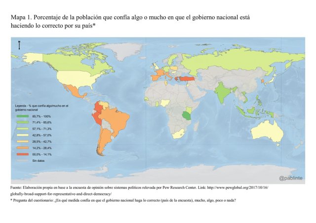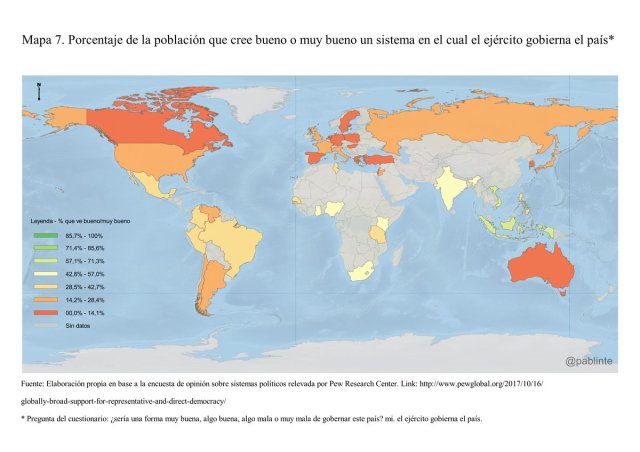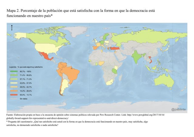 En octubre del pasado año el Pew Research Center realizó una encuesta en 38 países que buscaba determinar cómo se ve a la democracia, un gobierno militar y otros sistemas políticos alrededor del mundo.