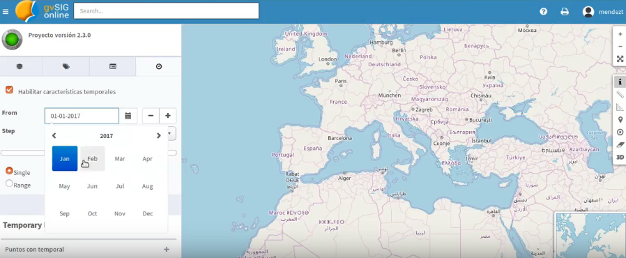 The management of the geographic component of the information from a temporal point of view becomes increasingly necessary. That is why both in the last version of gvSIG Desktop and in gvSIG Online we have implemented the necessary tools to work with 4D