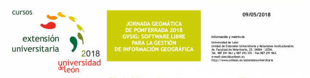El próximo 9 de mayo tendrá lugar en el Campus de Ponferrada de la Universidad de León (España) una Jornada sobre Geomática. El tema central de la Jornada es la Información Geográfica en su sentido más amplio, e incluirá varias ponencias y talleres tanto para usuarios como para desarrolladores. Por un lado, se pretende dar a conocer, entre estudiantes de cualquier nivel formativo, qué es la información geográfica y cuáles son sus aplicaciones. Además, se pretende completar la formación de los estudiantes universitarios o profesionales que ya trabajan con información geográfica.