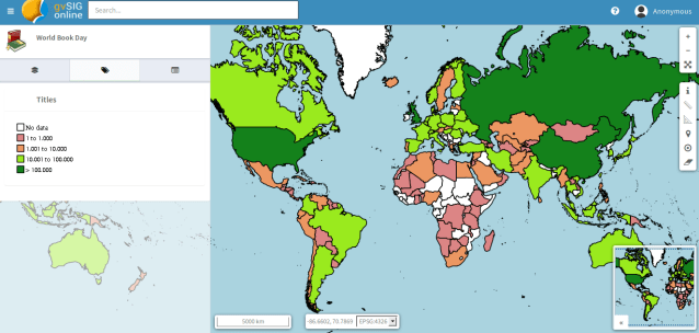 Con motivo del Día Internacional del Libro, este 23 de abril, hemos querido hacer un geoportal con gvSIG Online que aporte algo de información visual del mundo editorial actual. Para los que no lo conozcáis gvSIG Online es la solución de la Asociación para poner en marcha Infraestructuras de Datos Espaciales y organizar eficientemente la información con componente geográfica de una organización. Y además permite hacer geoportales, tantos como queramos y de forma muy sencilla.