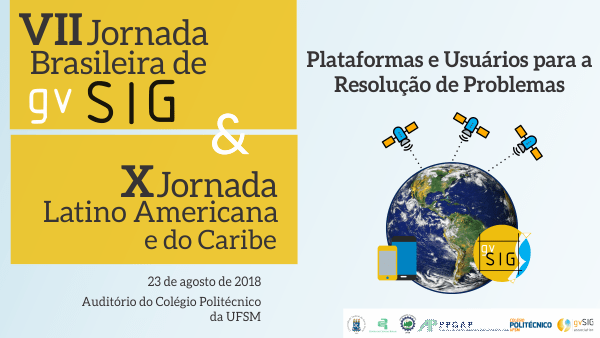 No dia 23 de agosto de 2018 será realizada 10as Jornada Latino Americana e do Caribe de gvSIG em Santa Maria (Rio Grande do Sul – Brasil) sobre o tema “Plataformas e usuários para resolução de problemas”, um novo encontro para a troca de experiências sobre o uso e desenvolvimento do gvSIG em conjunto com a Semana da Geomática da UFSM.