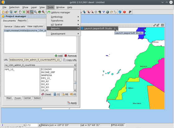 El taller estará enfocado a preparar capas y mapas en gvSIG para ser integrados en el diseñador de informes JasperSoft Studio, y a crear documentos de tipo ‘Informe’ en gvSIG que incluyan los informes creados con JasperSoft Studio (no es un taller sobre esta herramienta).