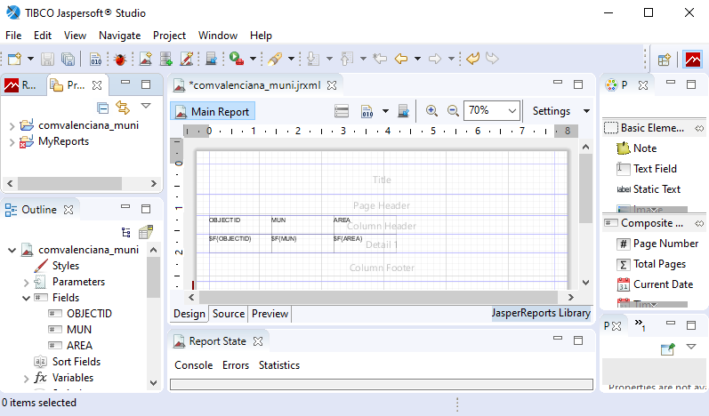 Una vez hechas las plantillas, solo habría que realizar un par de clicks para cargar los datos en ellas y generar el informe. No sería necesario ni disponer del software de Jaspersoft ya que gvSIG tiene todo lo necesario para la generación del informe una vez la plantilla está hecha. El informe puede guardarse como pdf o imprimirse directamente. Puedes llegar a realizarse informes muy complejos con Jaspersoft.