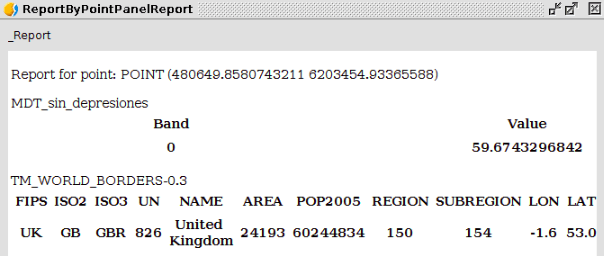 The operation is very simple, you only have to click on a specific point on the View and a report will be shown in a new window on that point with all the attributes of all visible layers. In that report you can select and copy data to the clipboard, being able to paste them in other applications.