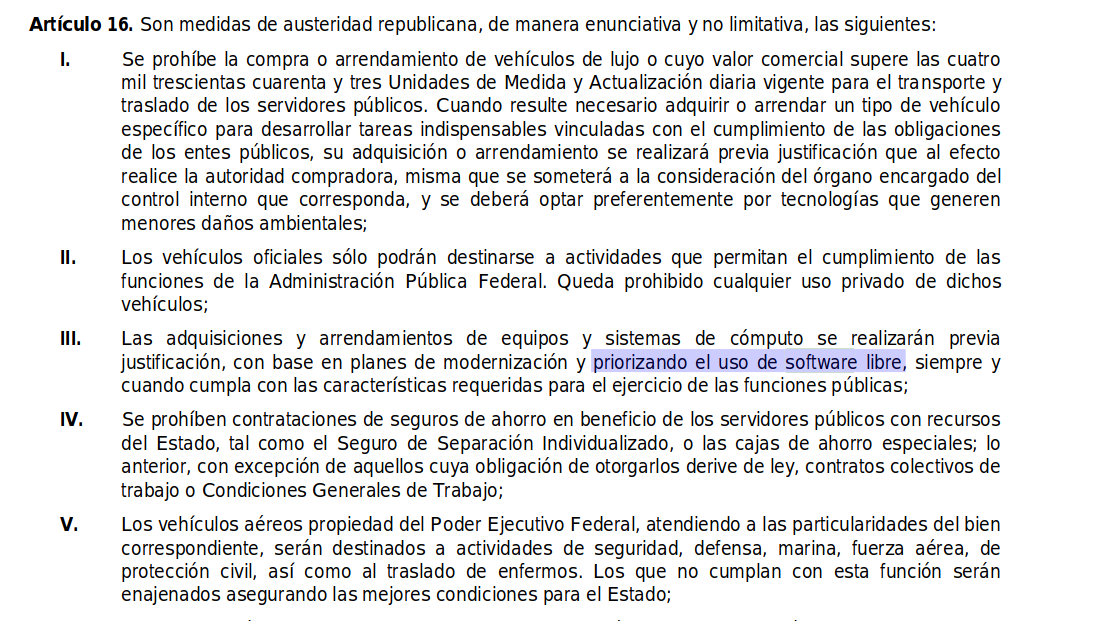 México también apuesta por el software libre. Ley de Austeridad Republicana