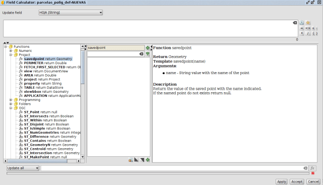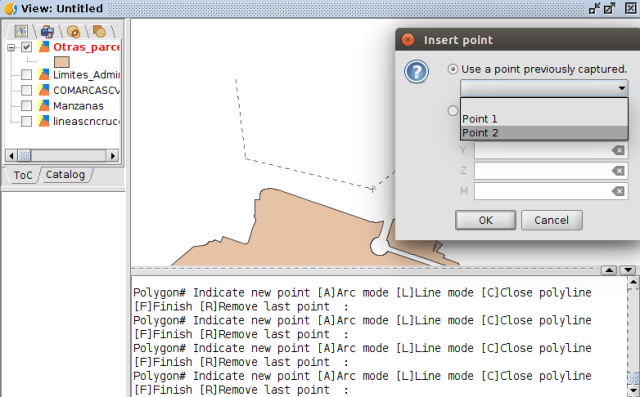 Posibilidad de utilizar expresiones para la inserción de puntos, lo que permite insertar puntos por coordenadas relativas, utilizar en las expresiones puntos guardados con el capturador de coordenadas y trabajar con coordenadas polares.