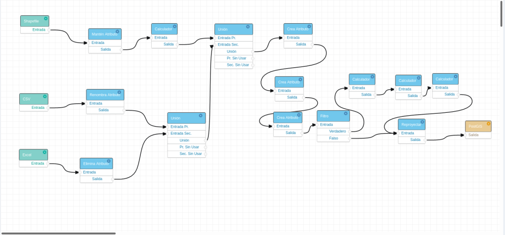 El proyecto desarrollado por Carles, “Implementación del plugin ETL para la plataforma gvSIG online”, consiste en una serie de desarrollos orientados a automatizar tareas de transformaciones de datos, ya sean repetitivas o no, de manera que no sea necesario la manipulación de los datos a través de código. De esta manera, cualquier usuario será capaz de hacer una manipulación de los datos (geométricamente o no) o una homogeneización de datos que provengan de diferentes orígenes y formatos. Esto será posible gracias a un canvas que representará gráficamente el proceso de transformación de los datos de una manera fácil e intuitiva.